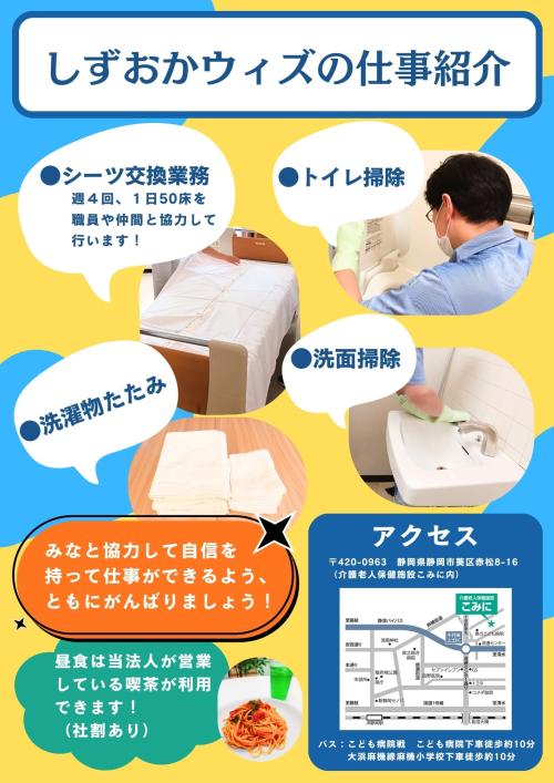 ・トイレ洗面掃除は、介護老人保健施設こみにの館内のトイレを清掃します。